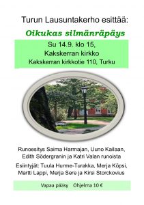 Syksyn perinteinen runoesitys Kakskerran kirkossa su 8.9. klo 15