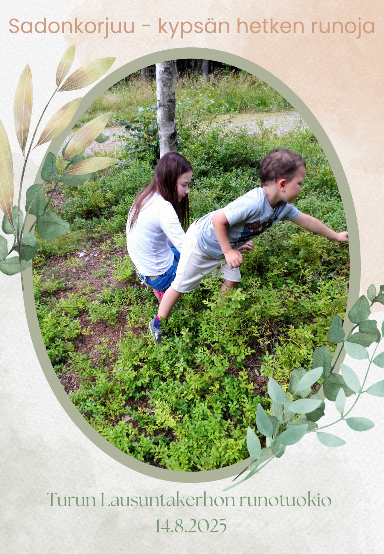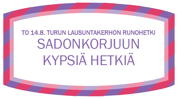 Sadonkorjuu – kypsän hetken runoja -runotuokio Tarkk’ampujan kappelissa 14.8. klo 15 Runot kertovat luonnon ja puutarhan syksyisistä antimista mutta myös meidän ihmisten kypsän iän sadosta, kun nautimme isovanhemmuudesta.