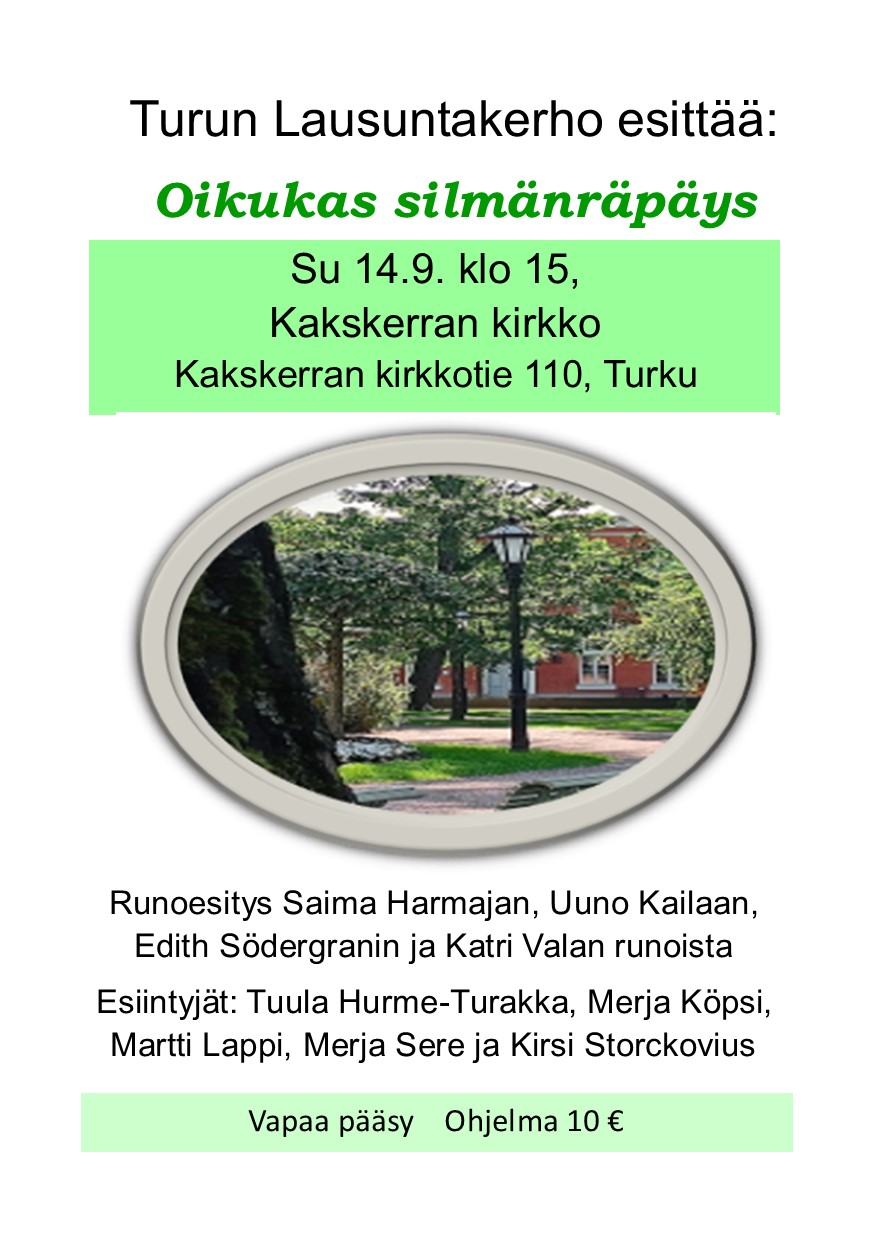 Syksyn perinteinen runoesitys Kakskerran kirkossa su 8.9. klo 15